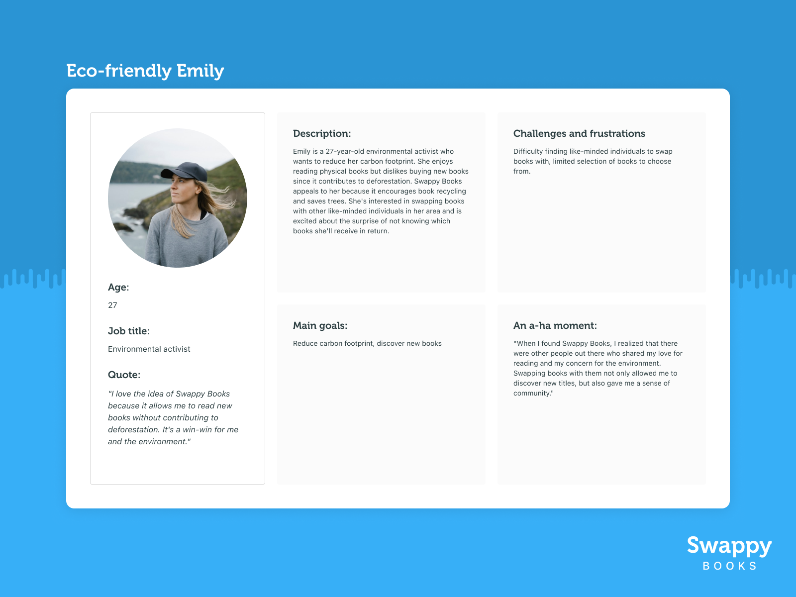 With Swappy Books, our goal was to encourage users to reconsider their approach to reading and to contribute to the effort of breathing new life into forgotten books.