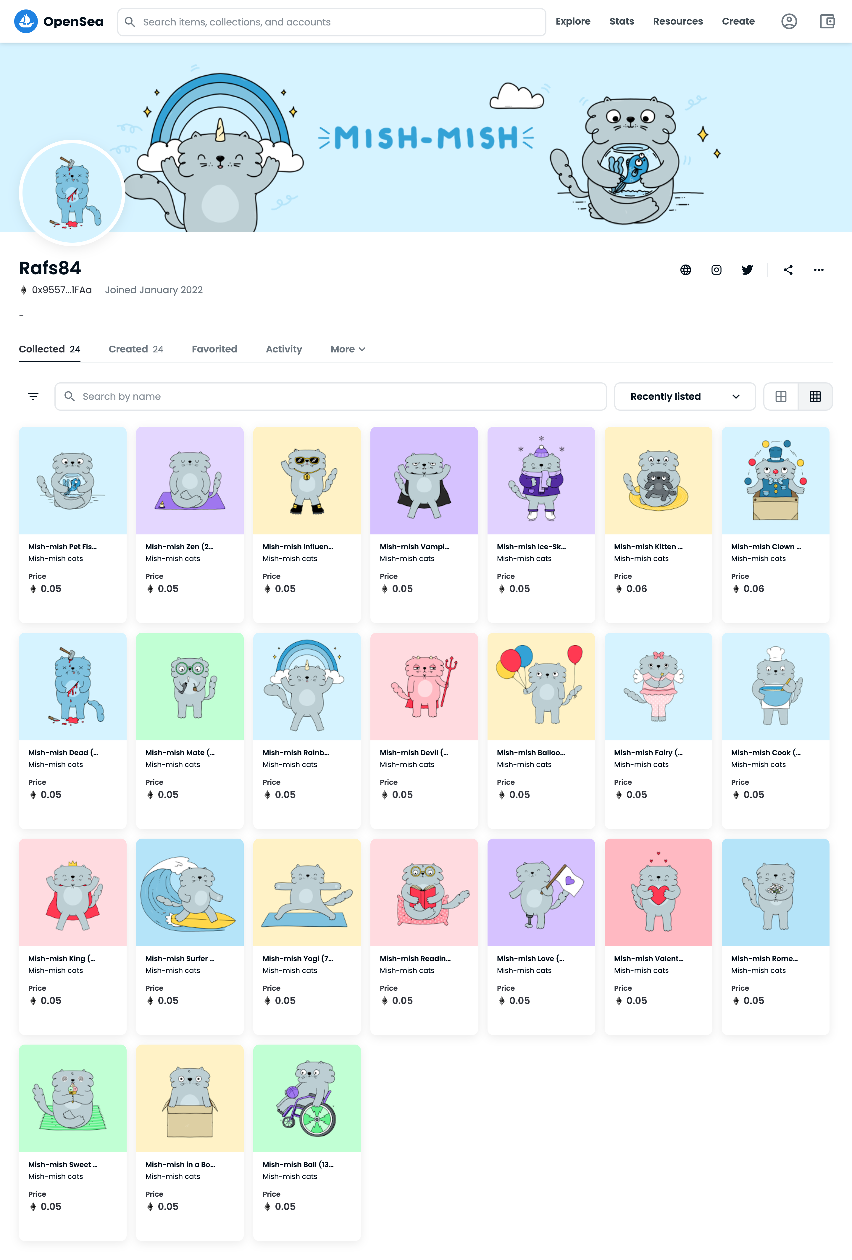 Mish-mish cats is a collectibles project featuring individually hand-drawn cute cat characters.